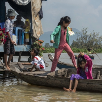 Le Cambodge est un petit pays au milieu de l’Asie du Sud-Est, avec un accès modeste à la mer. Sa particularité : un lac central, du nom de Tonlé Sap, qui peut tripler de taille entre la saison sèche et la saison des pluies, avec un pic de dix mètres de haut entre les saisons. Des villages entiers (flottant en saison des pluies) se retrouvent à sec : les motos remplacent les bateaux. Ce lac est la raison d’être de tout un pays.