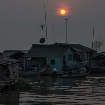 Cambodia is a small country in the middle of Southeast Asia, with modest access to the sea. Its peculiarity: a central lake, called Tonlé Sap, which can triple in size between the dry season and the rainy season, reaching a peak of ten meters in depth between the two. Entire villages (floating during the rainy season) end up on dry land: motorcycles replace boats. This lake is the very reason for the country’s existence.