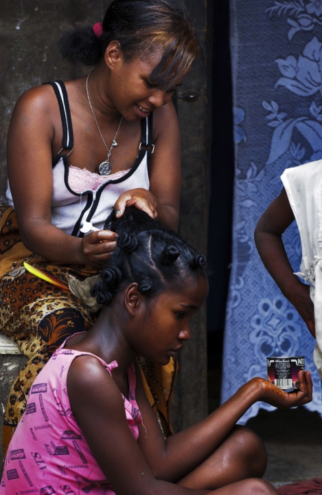 Madagascar Quotidien, Soins menagers chevelurecoiffagedeux filles