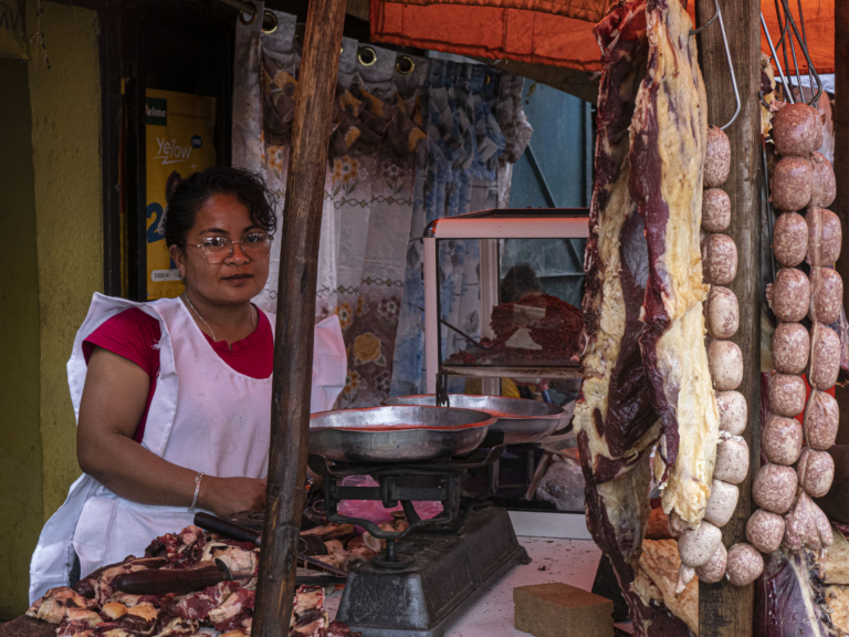 F MAD01 boucherie bien achalandée YA