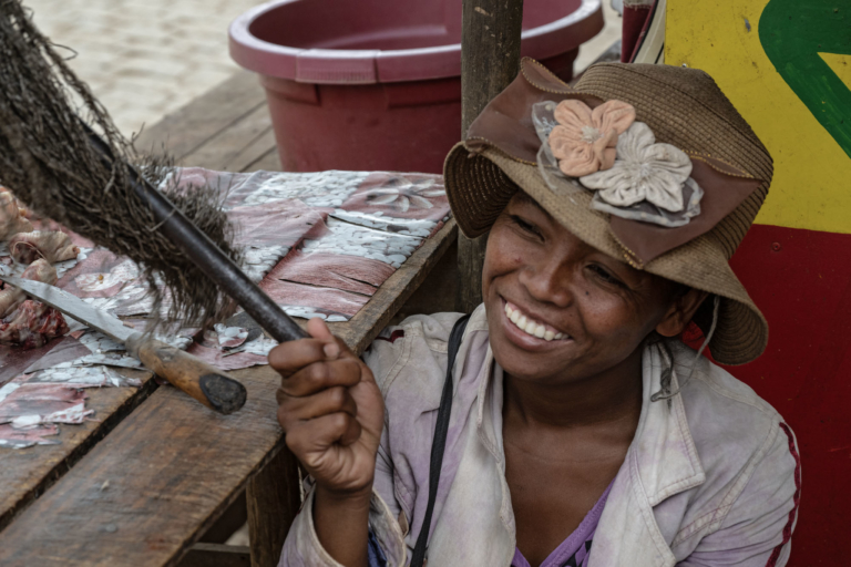 Madagascar Femme Ampanefyboucheriebouchièrechapeaucpouteauxsamedi 13 décembre 2025smilesmileSO Tana