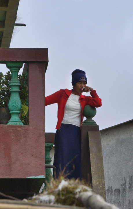 Madagascar Femme bonnetciel grisextérieurfillefroidmaisonpensivevéranda