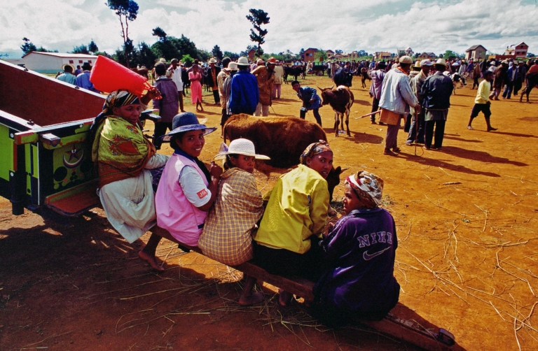Madagascar Femme assisecampagnecharrettecinq femmesfoulemarchéplein airsoleilterrezébus
