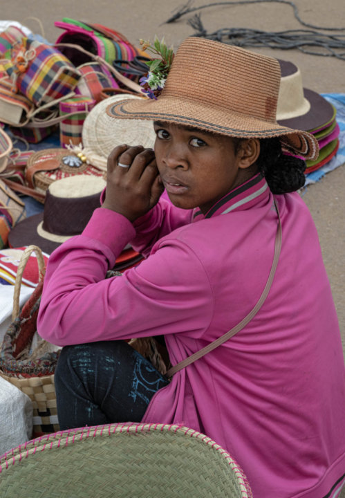 Madagascar Femme 30 mars 2024Ambositrabandoullièreschapeau gasycommerçantemavokelypanierpetakoronasacsobikavita gasy