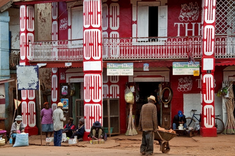 Madagascar Graphisme, Nature morte épicerieétalesmaisonmarchandspassantpassantsrouge-blanc