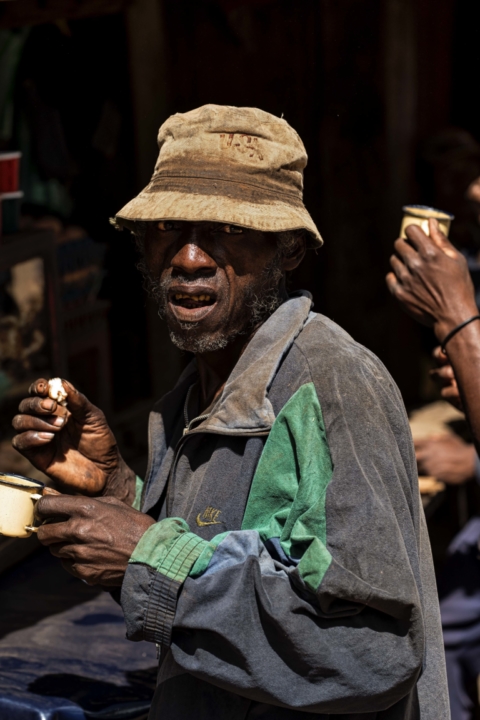 Madagascar Homme bustechapeauétonnéhommekaopypetit-déjeuner