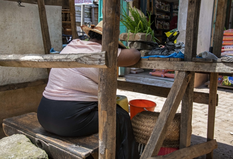 Madagascar Commerces, Marchés assiseassoupissementde dosétéFaratsihofemmegrossekiosquelongue journéePMrue centralestructure en bois