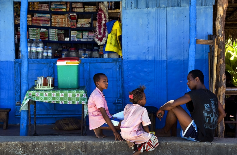 Madagascar Loisirs, Sports écolièresépiceriehommemarchandisesmur bleuombretrottoir