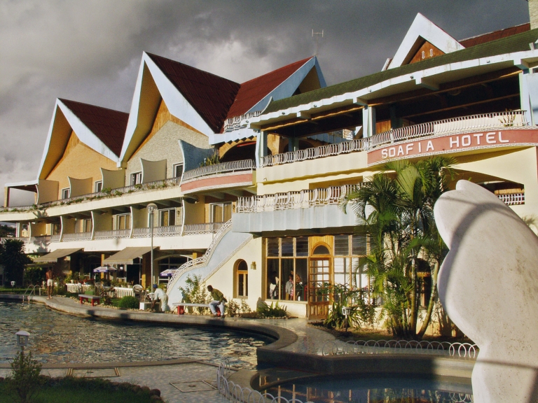 Madagascar Tourisme, Hotels ciel griscrépusculefaçadeHotelpiscineSoafia Hotel