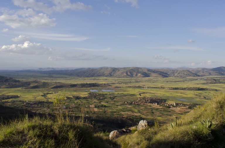 Madagascar Paysage campagnecielhabitationsnuagesplainerizièrevalléevillagesvue de hautvue panoramique