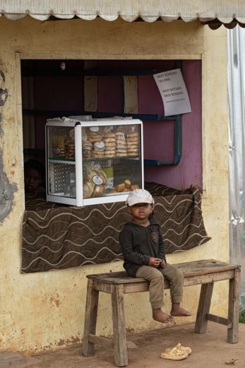 Madagascar Scene de RUE 7 mars 2026Ambodiranoankizy mpivarotrabancchapeauxenfantsgarçonnetmur jauneouest tanaregard curieuxvente des goûtervitrine