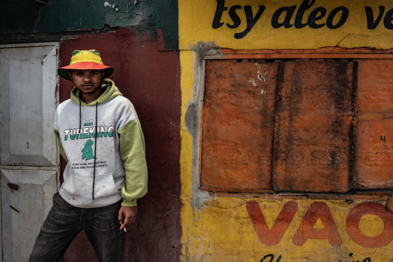 Madagascar Scene de RUE Andohatapenaka: Route Diguebobdimanche 21 décembre 2025jaunemur publicitésigaratâches de couleurTana Ouest