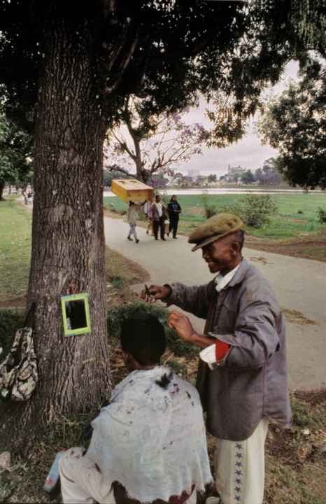 Madagascar Scene de RUE arbrecoiffeurcoupe de cheveuxhommemiroirpassantsplein airrueruesourire