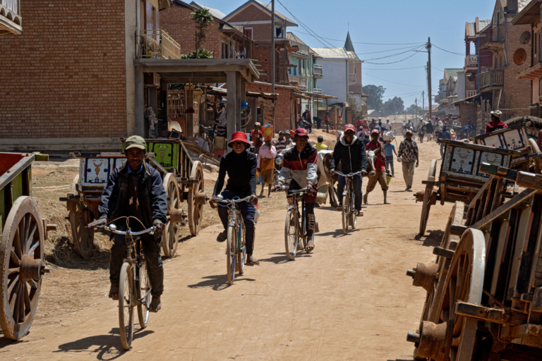 Madagascar Transport, Déplacements bobcasquettescharettechemin de terreéglisemaison en briquesMora Ranoseptembre 2025soleiltaxi vélo