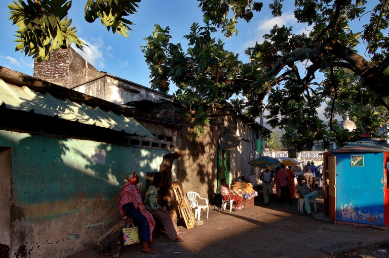 Comoros Ville, Village arbresciel bleufeuillesgenshabitationsmarchéombresoleilsoleil