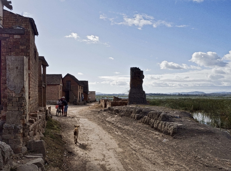 Madagascar Ville, Village campagnechemin de terrechiencrépusculeterrevélovillage