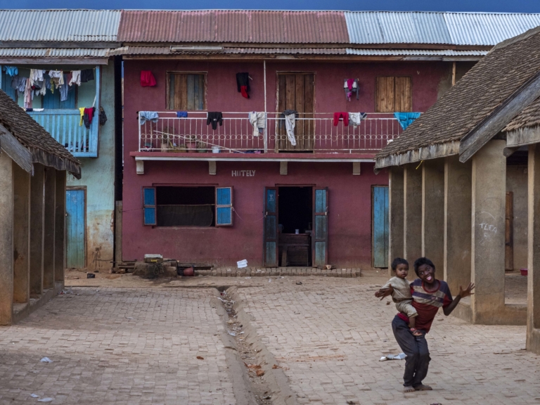 Madagascar Ville, Village Antsampandranogarçongrimacejeumarché videsimulacre