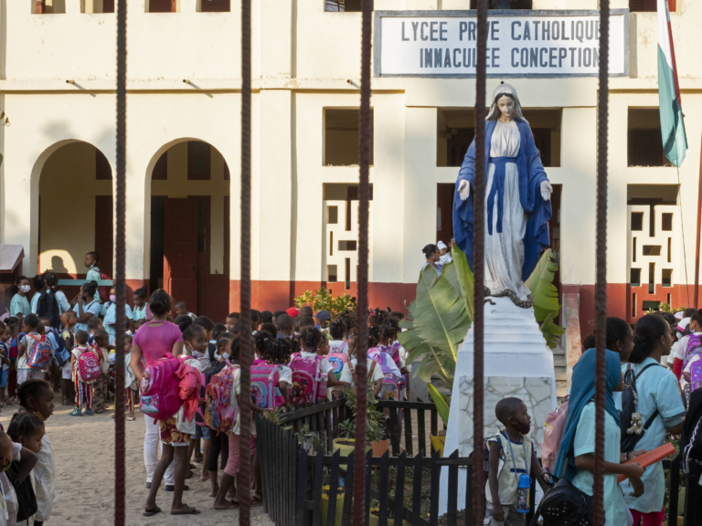 Madagascar Rituel, Folklore, Religion 21 septembre 2021: Morondavaélèvesen rangsImmaculée conceptionLycée catholiquestatue