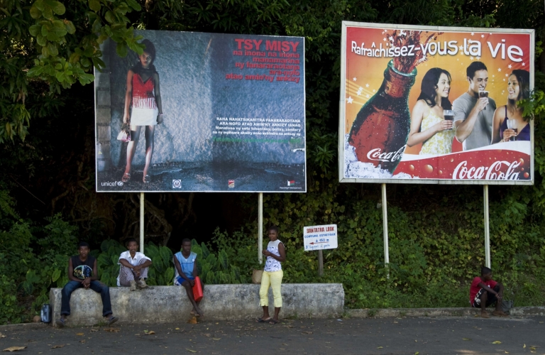 Madagascar Fait de Société attentecinq personnespanneaux publicitairesrue