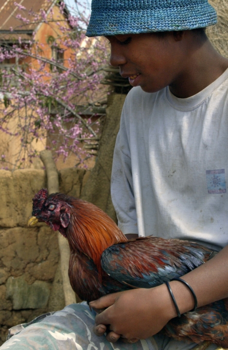 N MAD04 garçon et son coq YA