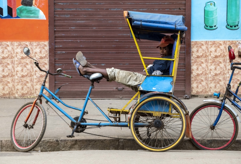 Madagascar Transport, Déplacements 3 novembre 2019Antsirabeattentecyclo-poussedimanchehommemur carrelé