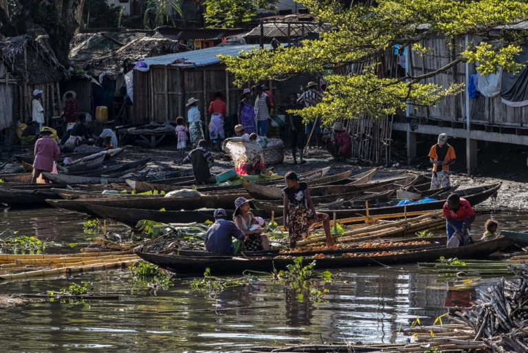 Madagascar Ville, Village casesfruitslégumeslivraisonpiroguesriverivièrevillage